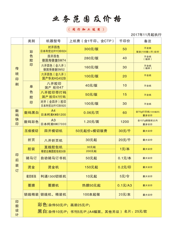 印刷品報價表
